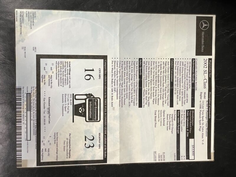 2002 Mercedes-Benz SL 500 2-Door Convertible